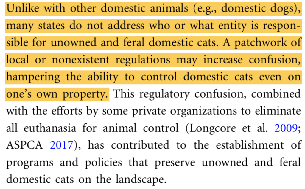 Finally, we express concerns about veterinary programs that have developed externally funded “shelter medicine” programs that put out messages about management of stray and feral cats that undermine established science.