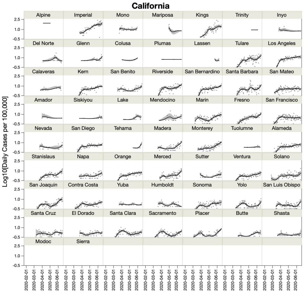 California, despite not having nearly the case rate as New York and New Jersey, has many counties seeing significant increases in the period since social distancing rules were loosened. With the new statewide mask order, perhaps that will be abated, but it will take a couple of weeks to tell.