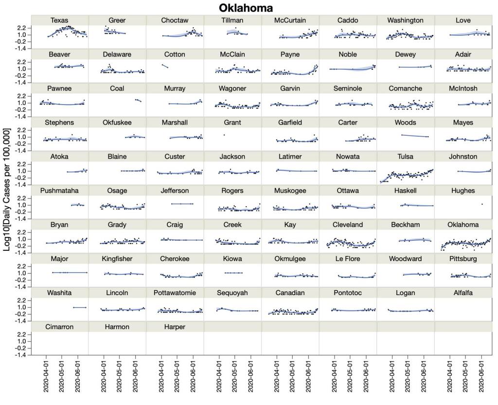 Oklahoma, site of the Trump rally tomorrow, had a long period of relatively stable number of new cases and has in the last two weeks seen many counties increasing the rate of growth of cases, including Tulsa County. Public health precepts would suggest that it is exactly not the time to hold an indoor event with (perhaps up to) 20,000 people.